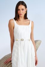 VESTIDO MIDI DETALHE FIVELA COURO